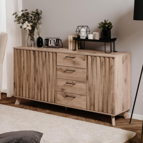 Večnamenska omara 60x136H cm s predali v barvi svetle moke in polico iz bele karare - Gorki: vsestranski in eleganten kos pohištva, kot nalašč za organizacijo in okrasitev katerega koli prostora v vašem domu.