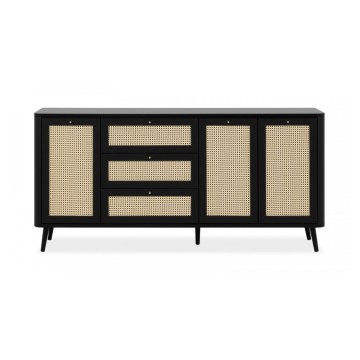 175 cm stranska omara s 3 predali in 3 vrati z rafijo v črni barvi - KUTA51A175 cm stranska omara KUTA51A je odlična rešitev za stilsko in funkcionalno ureditev vašega prostora. Opremljena je s 3 predali in 3 vrati z učinkom rafije v črni barvi ter ponuja dovolj prostora za shranjevanje predmetov in vzdrževanje reda v vašem domu. Njena elegantna zasnova je primerna za različna okolja in sloge opreme, učinek črne rafije pa dodaja pridih prefinjenosti. Ne glede na to, ali jo uporabljate v jedilnici, dnevni sobi ali kuhinji, bo kredenca KUTA51A praktičen in vizualno privlačen element v vašem domu. S to stilsko oblikovano stransko mizico stilsko uredite svoj prostor. Lastnosti: |