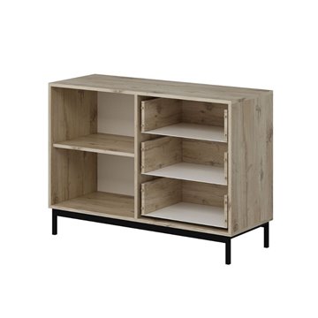 Bočna omara Mayri je popolna pohištvena rešitev za tiste, ki iščejo funkcionalnost in sodoben slog. Odlikuje jo masivna struktura s svetlim hrastom in antracitnimi vložki, ki zagotavlja eleganten in sodoben kontrast. Rebrasti učinek na sprednjih vratih dodaja dekorativno oblikovno noto, ki je idealna za prefinjena okolja. Zaradi kompaktnih dimenzij 120x45x90H cm je primeren za prostorne dnevne sobe ter vhode ali hodnike. Opremljen je z enimi vrati in tremi predali, zato omogoča najboljšo možno organizacijo predmetov in dodatkov. Prostorna, praktična in dekorativna kredenca, ki je kot nalašč za okusen zaključek opremljanja vašega doma.