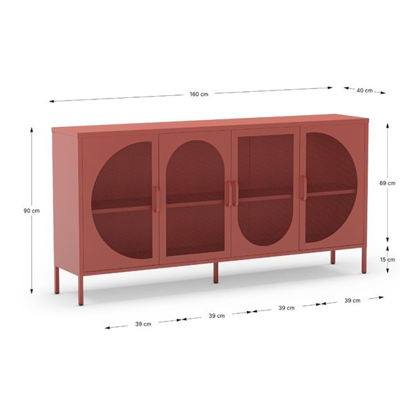 Kovinska kredenca s 4 rešetkastimi vrati barva terakota 160x40x90H Tayra