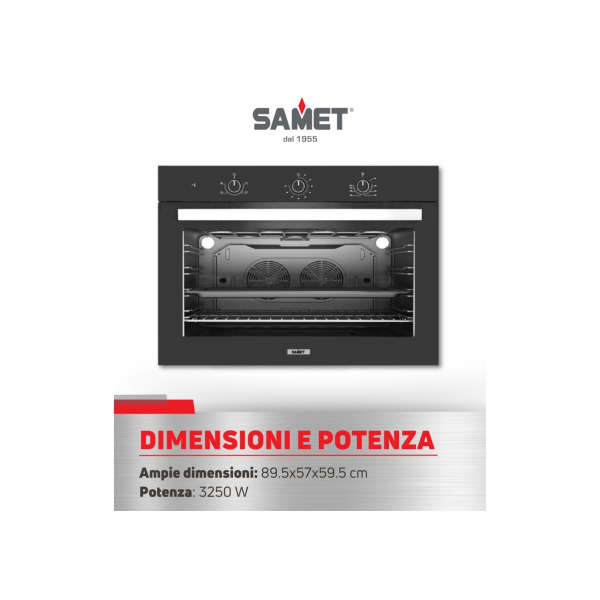 Maksi pečica Samet Apollo je zaradi svoje 100-litrske prostornine idealna za peko velikih količin hrane. Črna zasnova daje vaši kuhinji eleganco in slog.