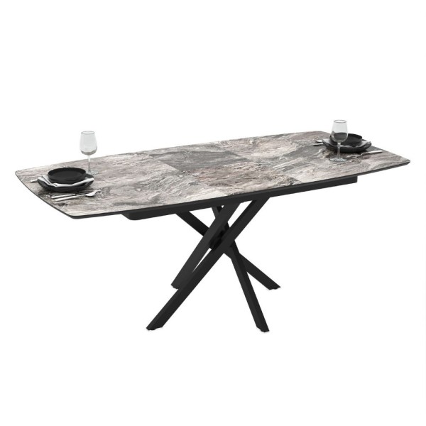 Raztegljiva miza s črnim arabesknim marmornatim vrhom in črnimi nogami 145x90 cm Filis
