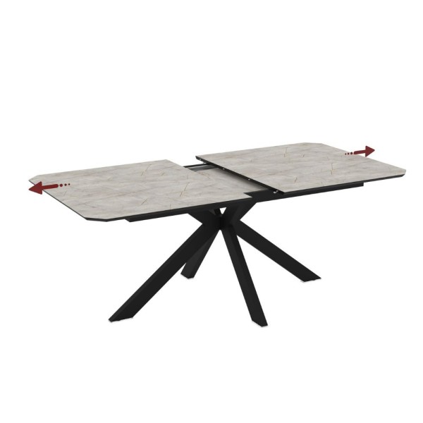 Raztegljiva miza z matirano sivo marmornato površino in črnimi kovinskimi nogami 180x100 cm Opera