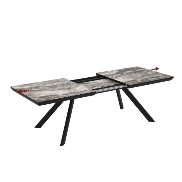 Raztegljiva miza z osrednjim podaljškom in enostavnim mehanizmom.