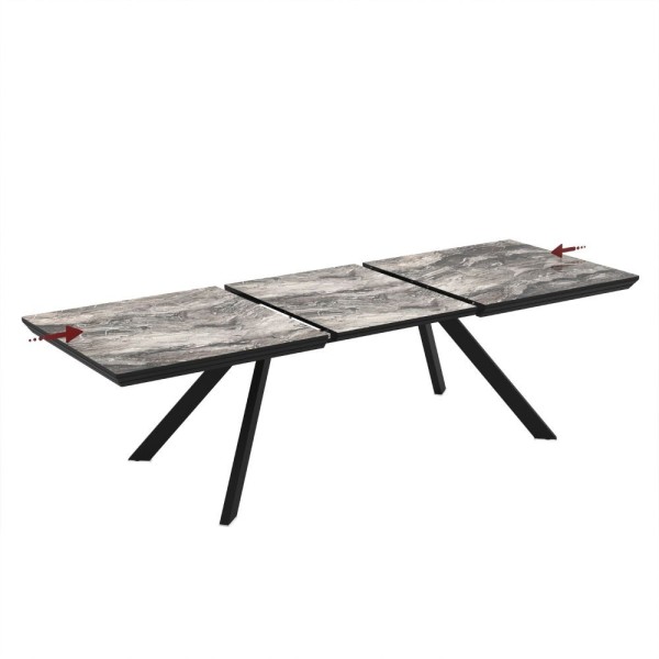 Elegantna miza z matirano sivo keramično ploščo z marmornim učinkom, dimenzije 180x90 cm, visokokakovosten izdelek, izdelan v Nemčiji.