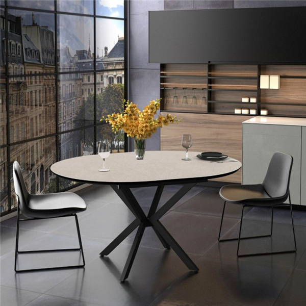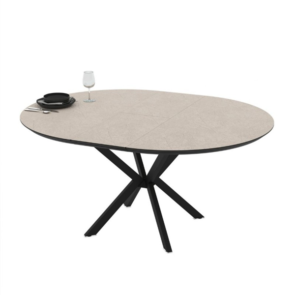 Raztegljiva okrogla miza z zgornjim delom v kašmirski barvi in črnimi nogami 126 cm - Bagok