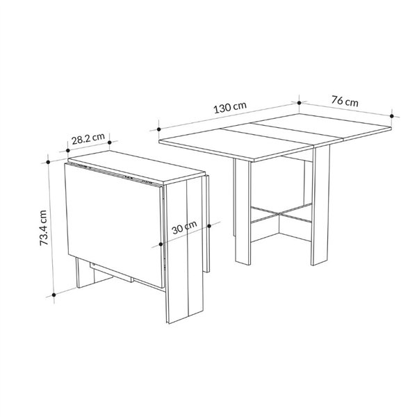 Polodprta se lahko spremeni v praktično pisalno mizo ali mizo za zajtrk v dvoje.