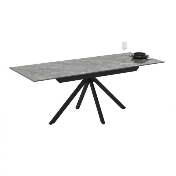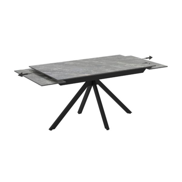Raztegljiva miza s keramičnim vrhom in kovinskimi nogami.