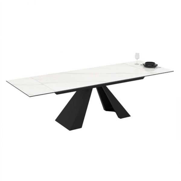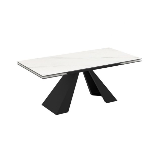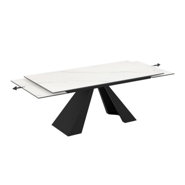 Raztegljiva miza s keramičnim vrhom z učinkom belega marmorja in črnimi kovinskimi nogami 180x90x77H Monza