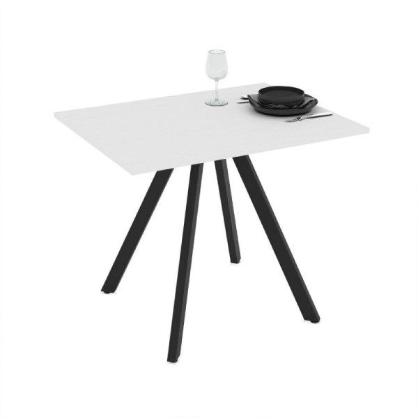 Lucasova pravokotna fiksna miza z vrhom iz belega jesena in črnimi nogami 90x70 cm