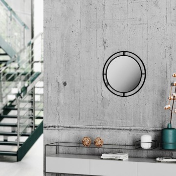 57 cm okroglo ogledalo z dvojnim kovinskim okvirjem črne barve - Bubble