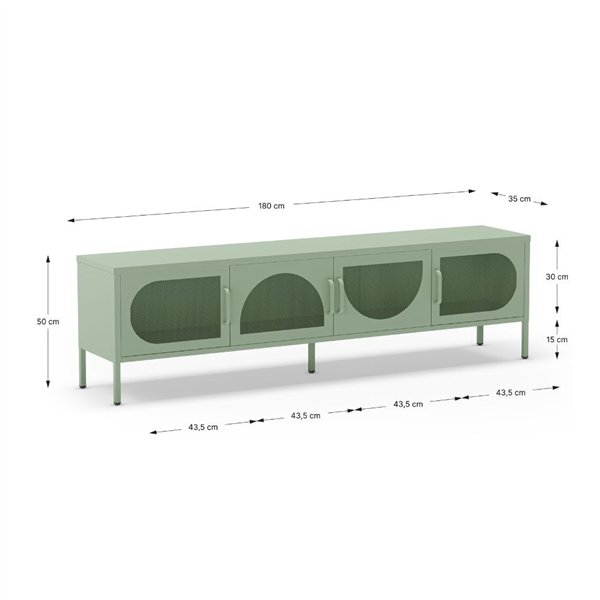 Kovinsko TV stojalo Tayra s 4 mrežastimi vrati 180x35x50H zelene barve