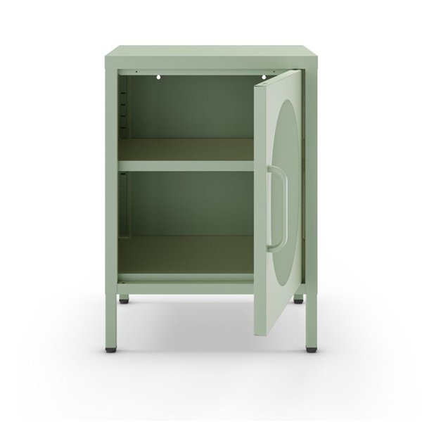Nočna omarica Glynn je elegantna in funkcionalna, z vrati in odprtim predalom, da boste imeli vse, kar potrebujete, vedno pri roki.