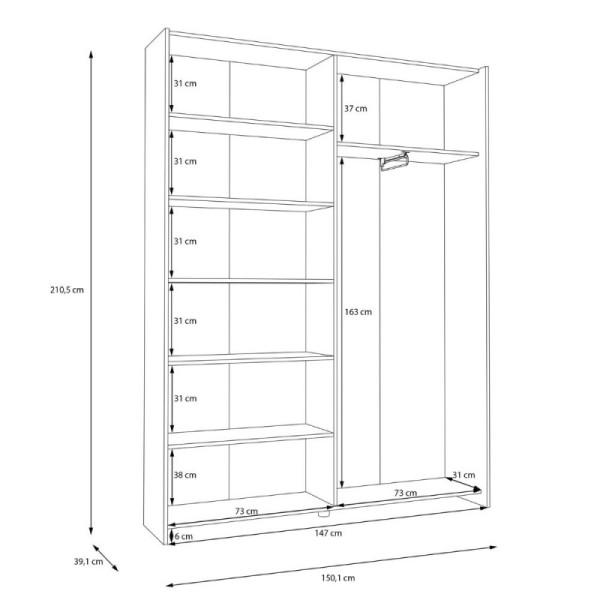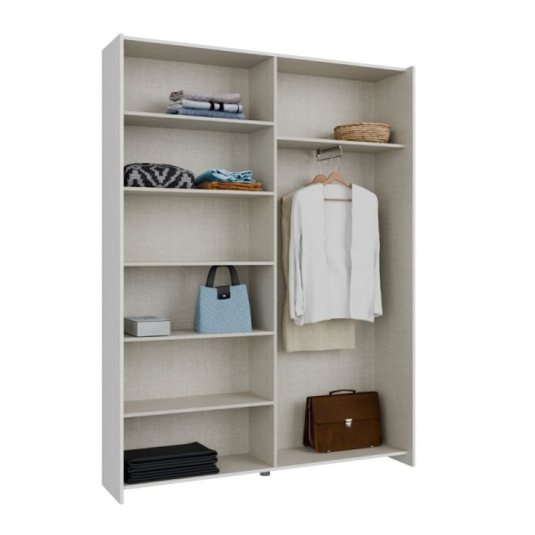 V notranjosti omare boste našli strukturo, organizirano do najmanjše podrobnosti: 6 priročnih polic in 1 kavelj za oblačila. Vedno boste imeli vse pospravljeno in na dosegu roke!