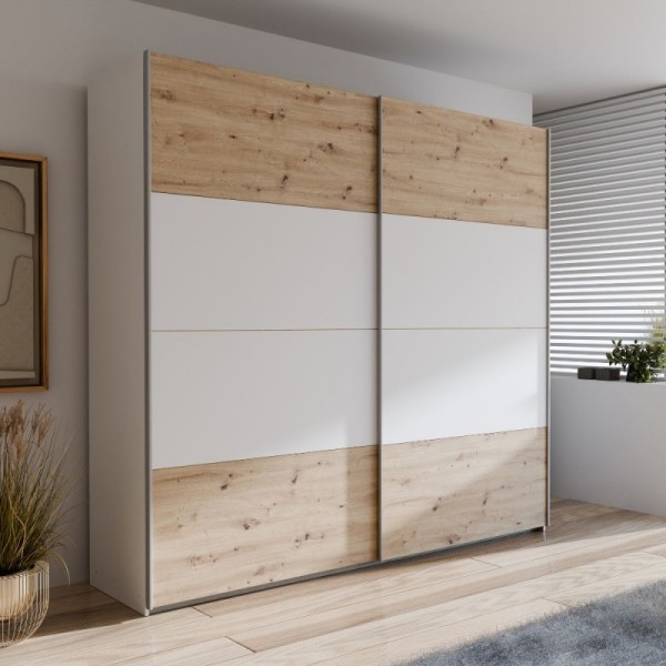 Iščete rešitev, ki združuje funkcionalnost, sodoben slog in možnost optimizacije prostora? Izberiteomaro Elioz 2 drsnimi vrati, prostorno in elegantno!