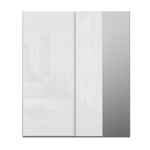 Garderobna omara z 2 drsnima vratoma in ogledalom 200x61x235H barva bela Afra