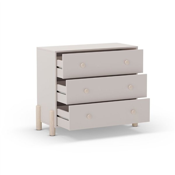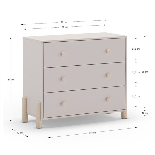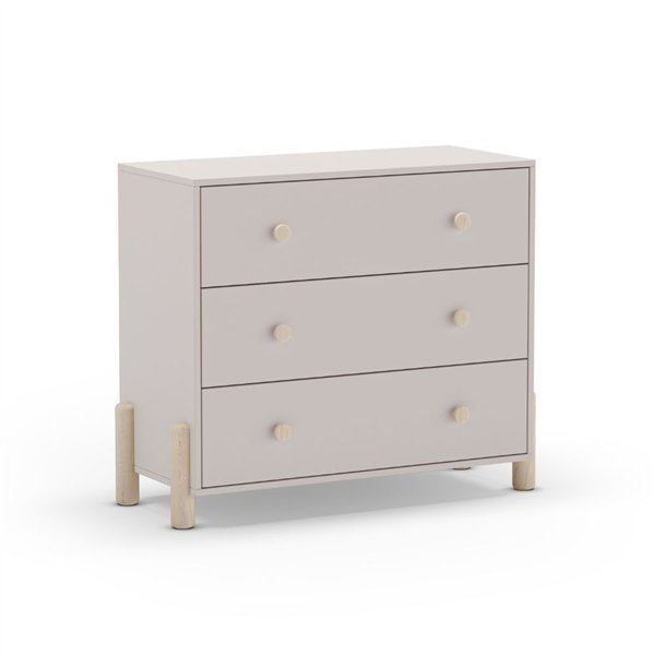 Čistost linij je združena z nežno bež barvo treh širokih predalov. Nevtralen in prefinjen ton, ki se zlahka zlije z vsakim kontekstom.
