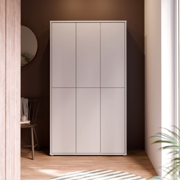 S šestimi diskretnimi, dobro poravnanimi vrati in kar 16 notranjimi policami ponuja izjemno modularnost. Ne glede na to, ali želite shraniti čevlje, perilo, pralna sredstva ali delovno orodje, bo vsak predmet našel svoje mesto. Zaradi majhne globine (le 34,9 cm) je kot nalašč za hodnike, hodnike, pralnice ali kot dodatek na podstrešju.