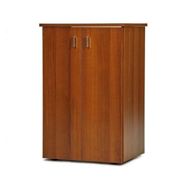 Praktična in kompaktna likalna enota z zložljivimi vrati, vrtljivimi kolesi in orehovo barvo. Idealna je za majhne prostore, saj združuje funkcionalnost in slog v enem kosu pohištva.
