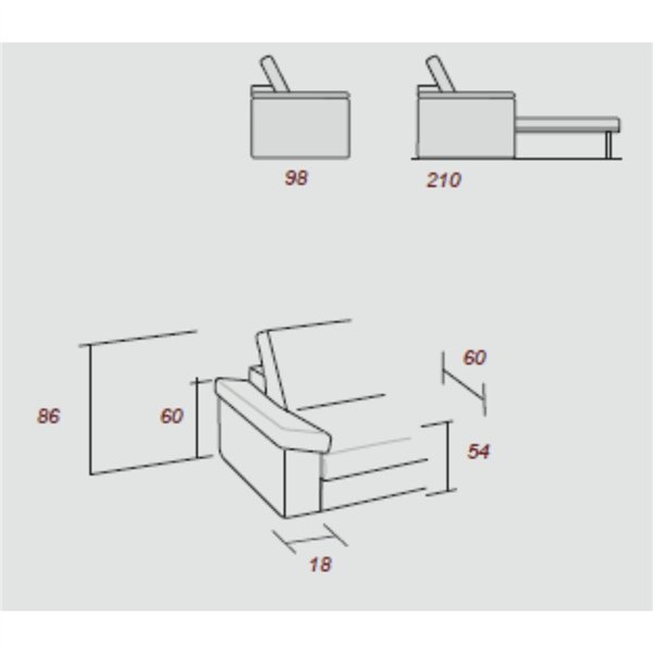 - Dimensioni: L 200 x P 98 x H 86 cm.