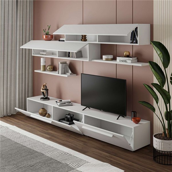 Stenski sistem z močnim in prefinjenim slogom spremeni vaš bivalni prostor v prostor, v katerem se eleganca prepleta s funkcionalnostjo.
