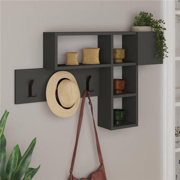 Stenski obešalnik s 5 kljukami in 2 praktičnima policama.