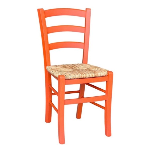 La sedia Venezia colore arancio seduta paglia è un complemento d'arredo che unisce il fascino dello stile coloniale alle linee essenziali del design moderno.