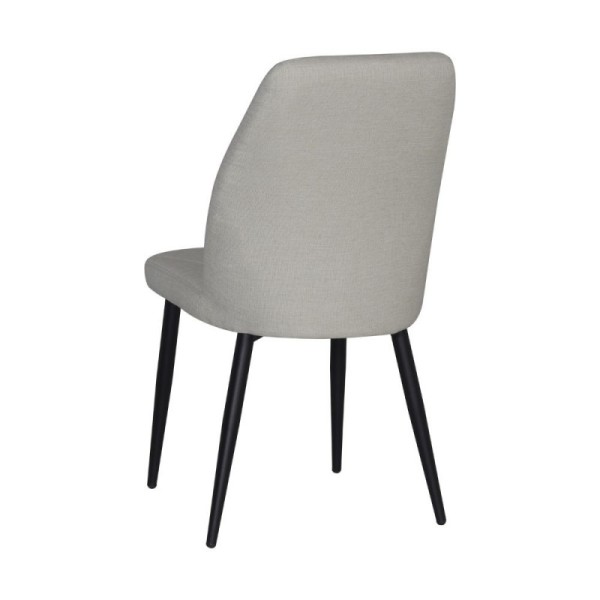 Stol Garki iz sive tkanine z elegantnimi črnimi kovinskimi nogami. Sodobno oblikovan, udoben in vzdržljiv, idealen za jedilnice, dnevne sobe ali profesionalna okolja.