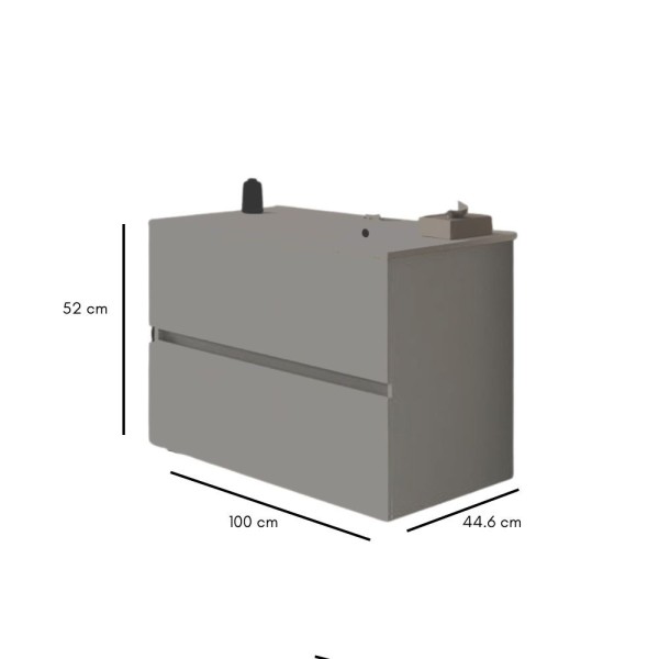 Viseče kopalniško pohištvo 100 cm bele barve, moderno in funkcionalno, z vgrajenim umivalnikom in velikimi predali. Odlično za opremljanje kopalnice z eleganco in praktičnostjo.